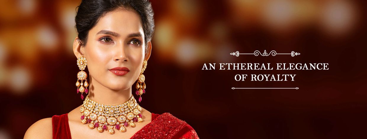The grand allure of Polki jewellery lies in its details, intricacy and visual elegance. Each piece is weaved together with extravagant patterns and mesmerizing rows of uncut diamonds. The beauty of a Polki is further accentuated with rich details, vibrant precious gems or pearls and detailed Meenakari work. Bejewel yourself with versatile Polki and be the beam of royalty on any occasion.