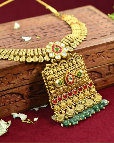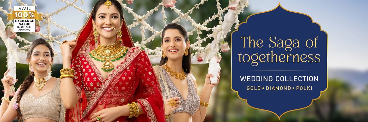 Be the epitome for grace and beauty donning bridal attire and Gold jewellery, with rich designs resonating with traditions and culture.